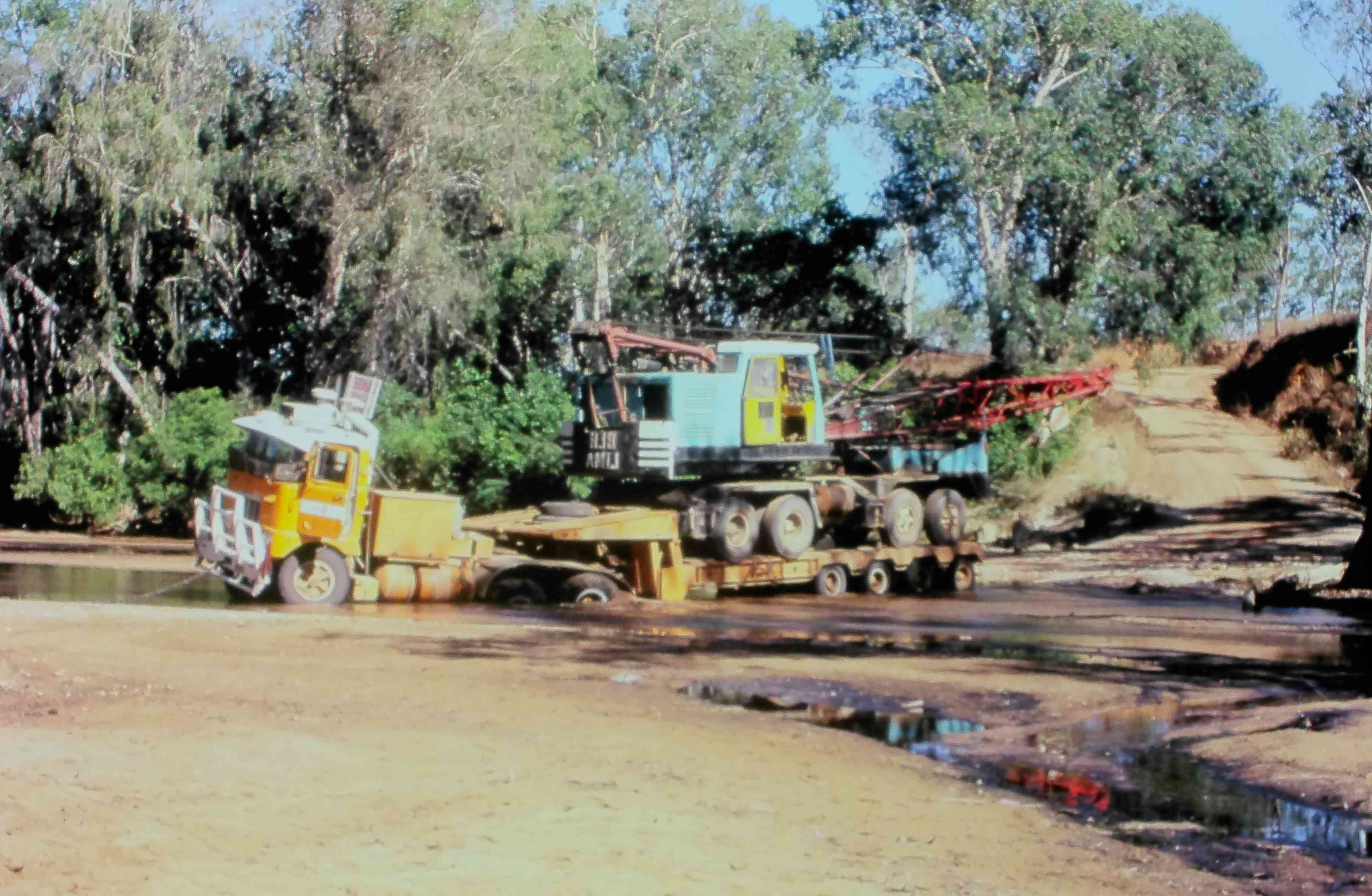 9428.8 Low loader attempting river crossing just before toppling