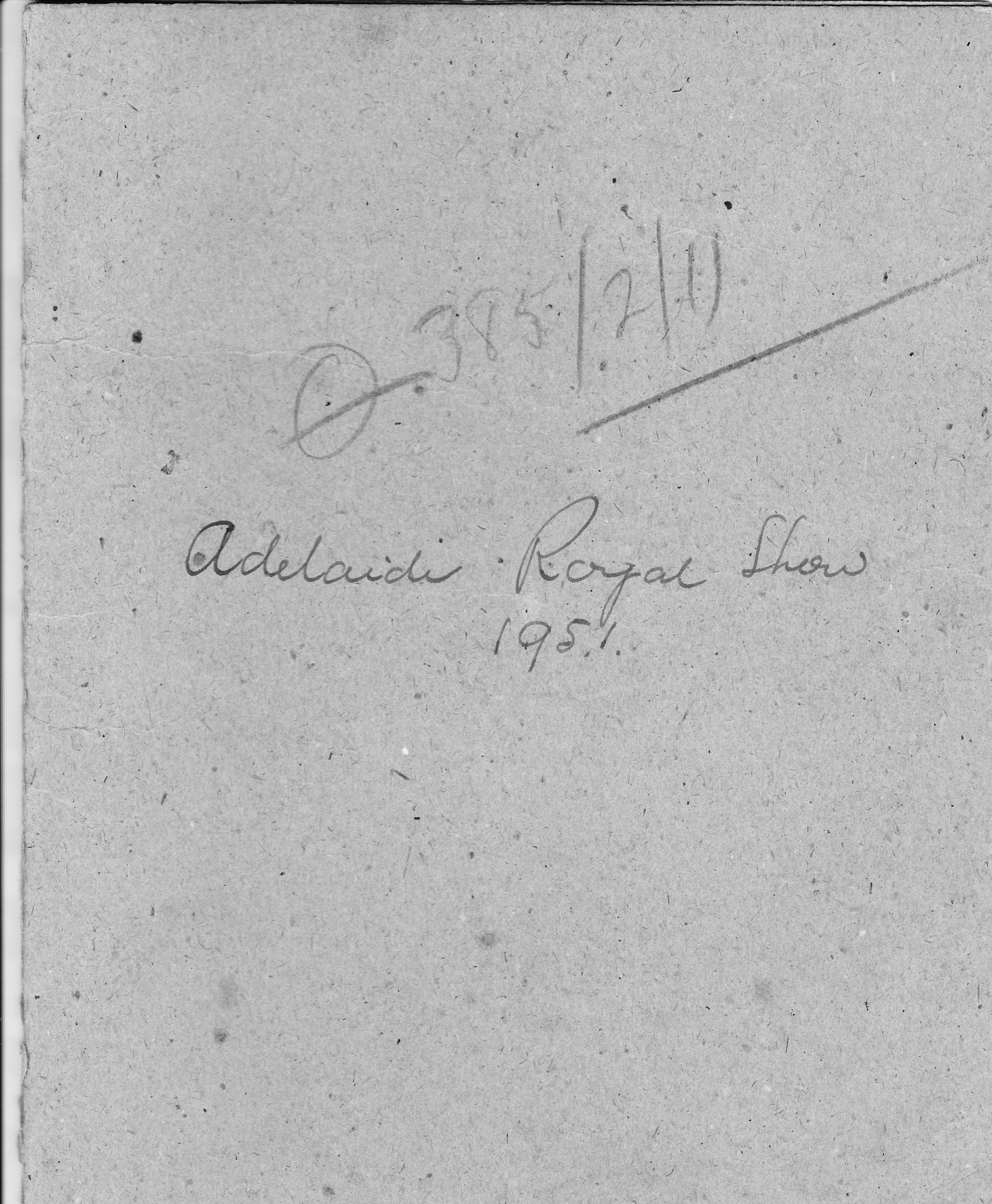 11 black & white photographs (all 220mm x 167mm) attached with a rubber band to a brown card marked “Adelaide Royal Show 1951” and Ref 388/2/11. (ITEM 9272)