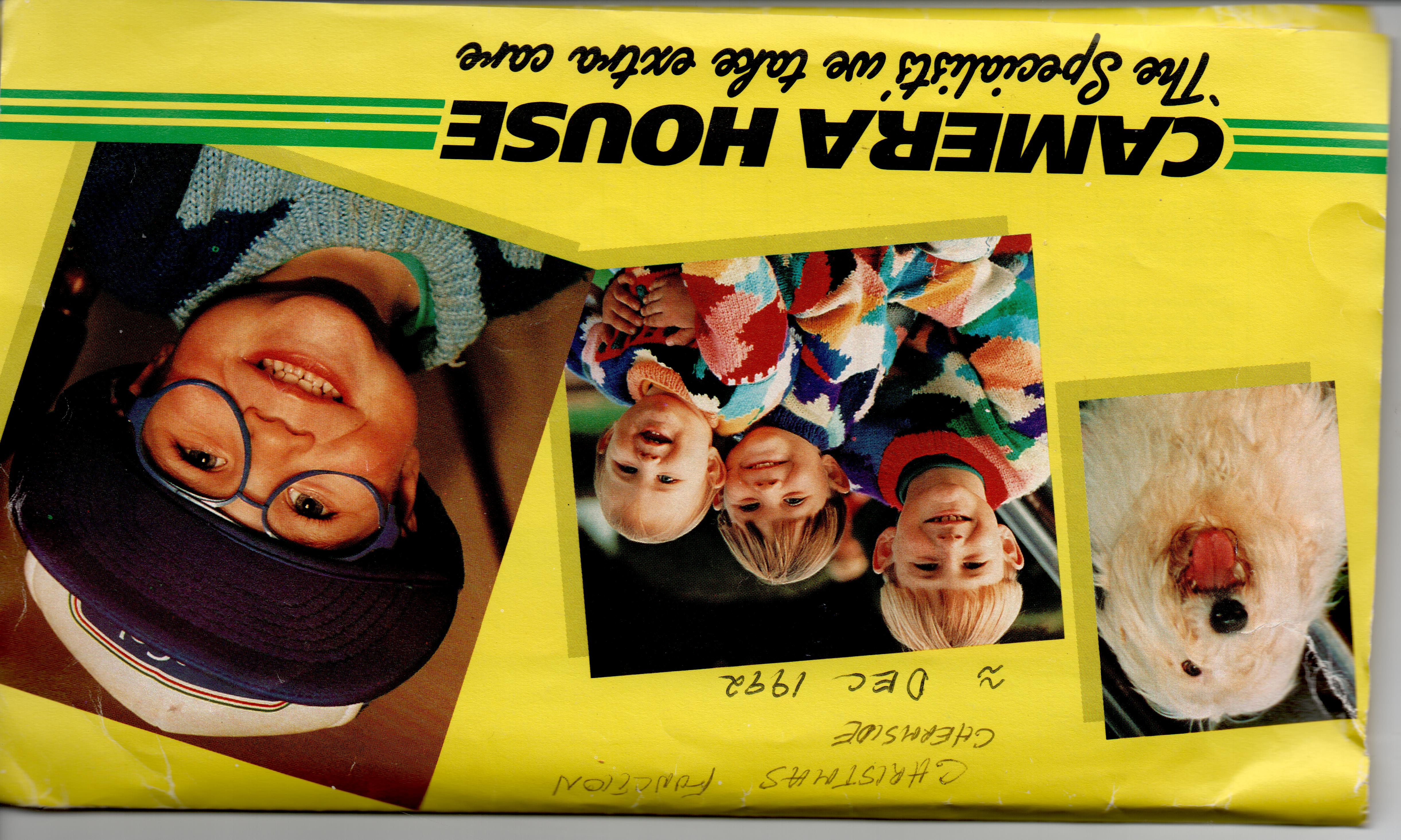 A “Camera House” photograph processed folder, contained in 1 clear A4 Sheet Protector with a sticker stating “Chermside Training School – Staff Christmas Party December 1992”.