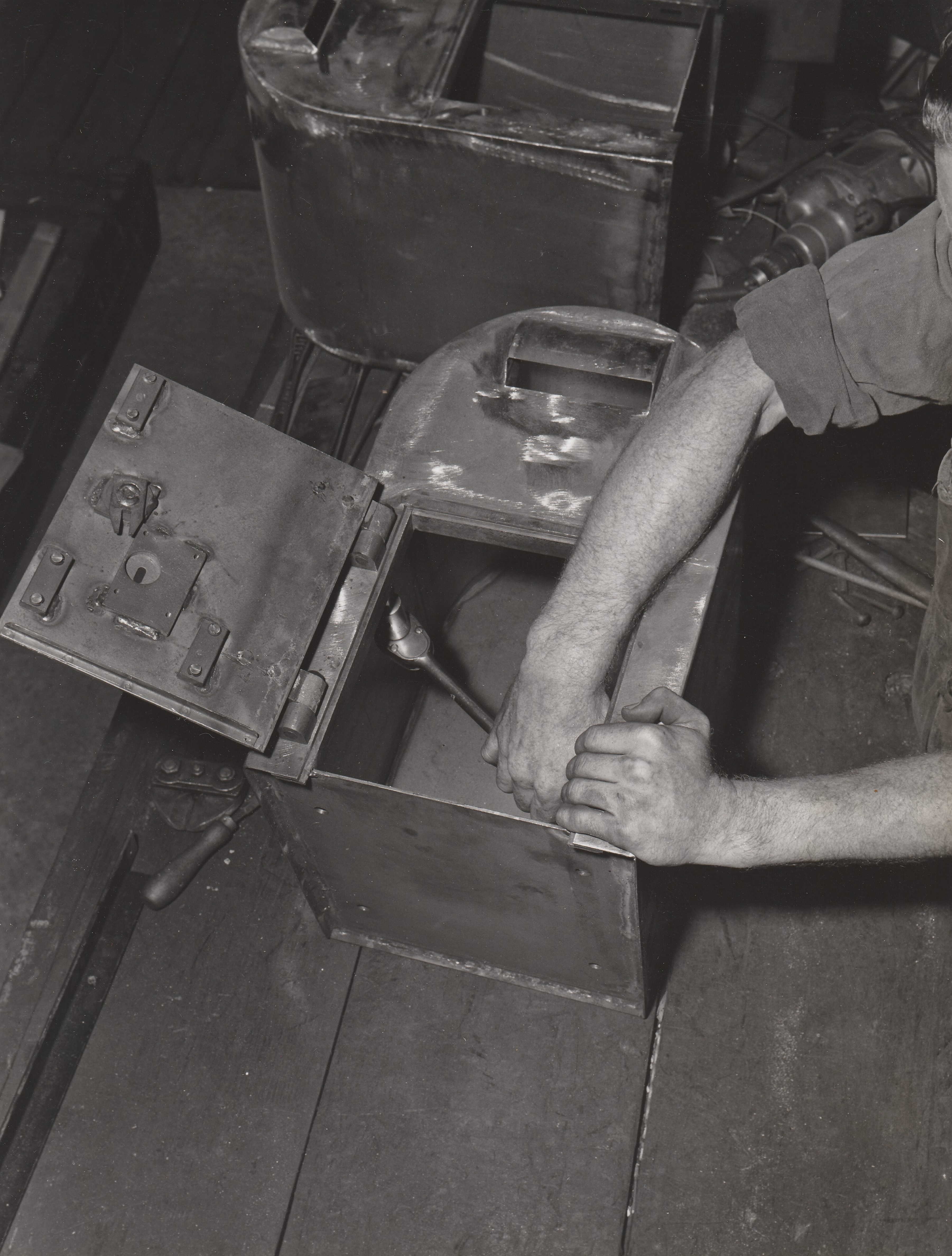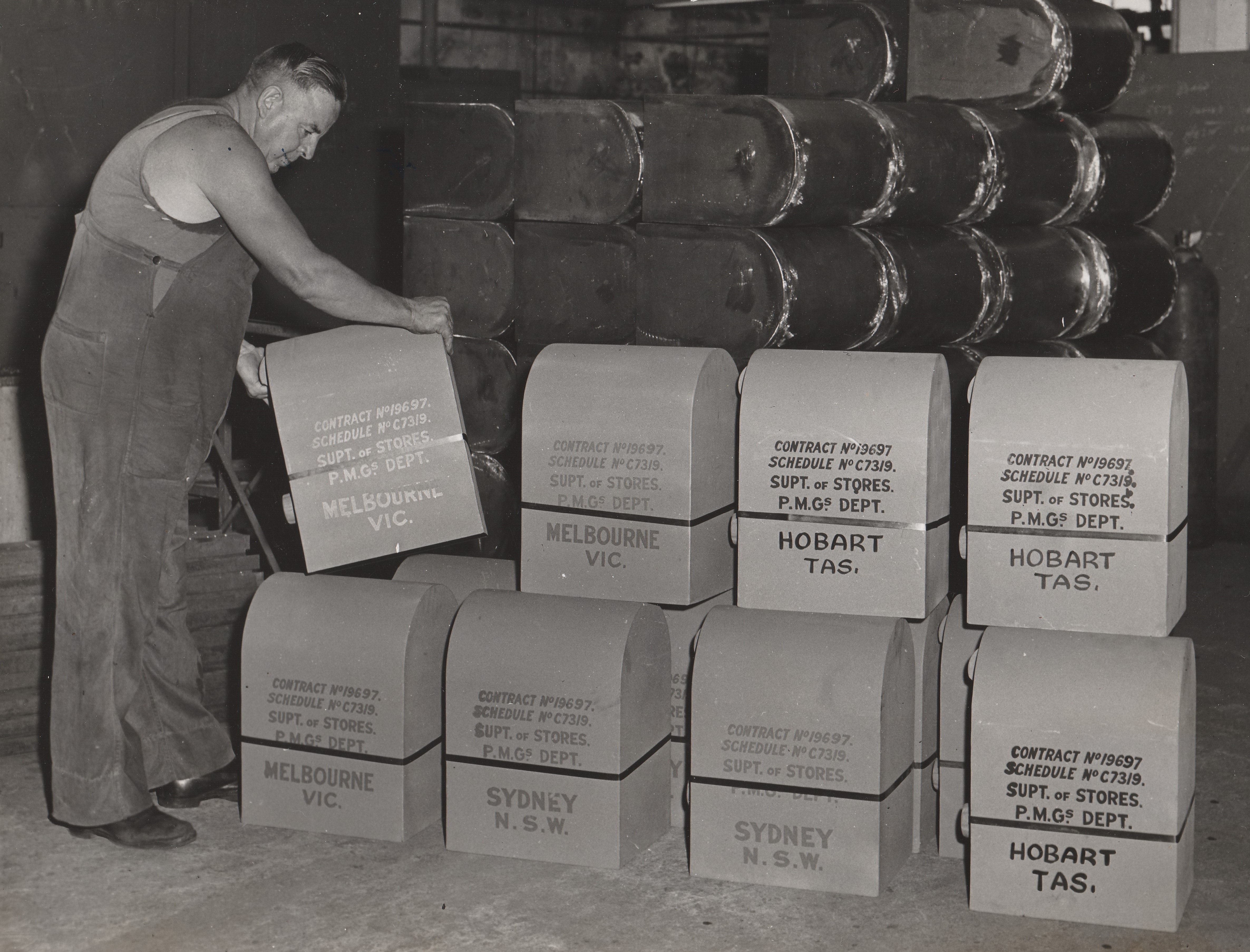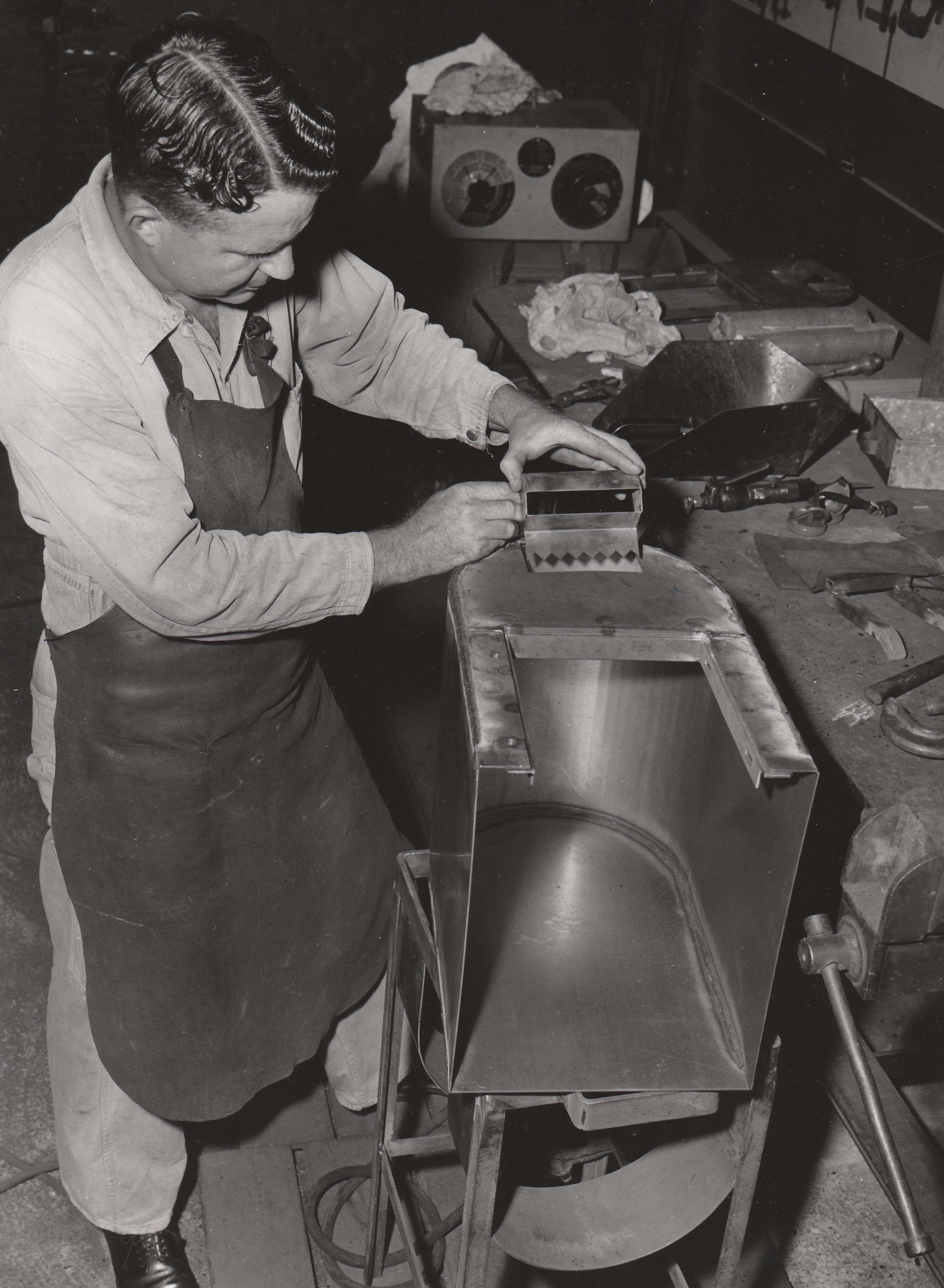 ITEM 9285 is a collection of 36 Black and White photographs relating to the PMG Workshops – Metal Products that were located in Wickham St, Fortitude Valley in Brisbane.