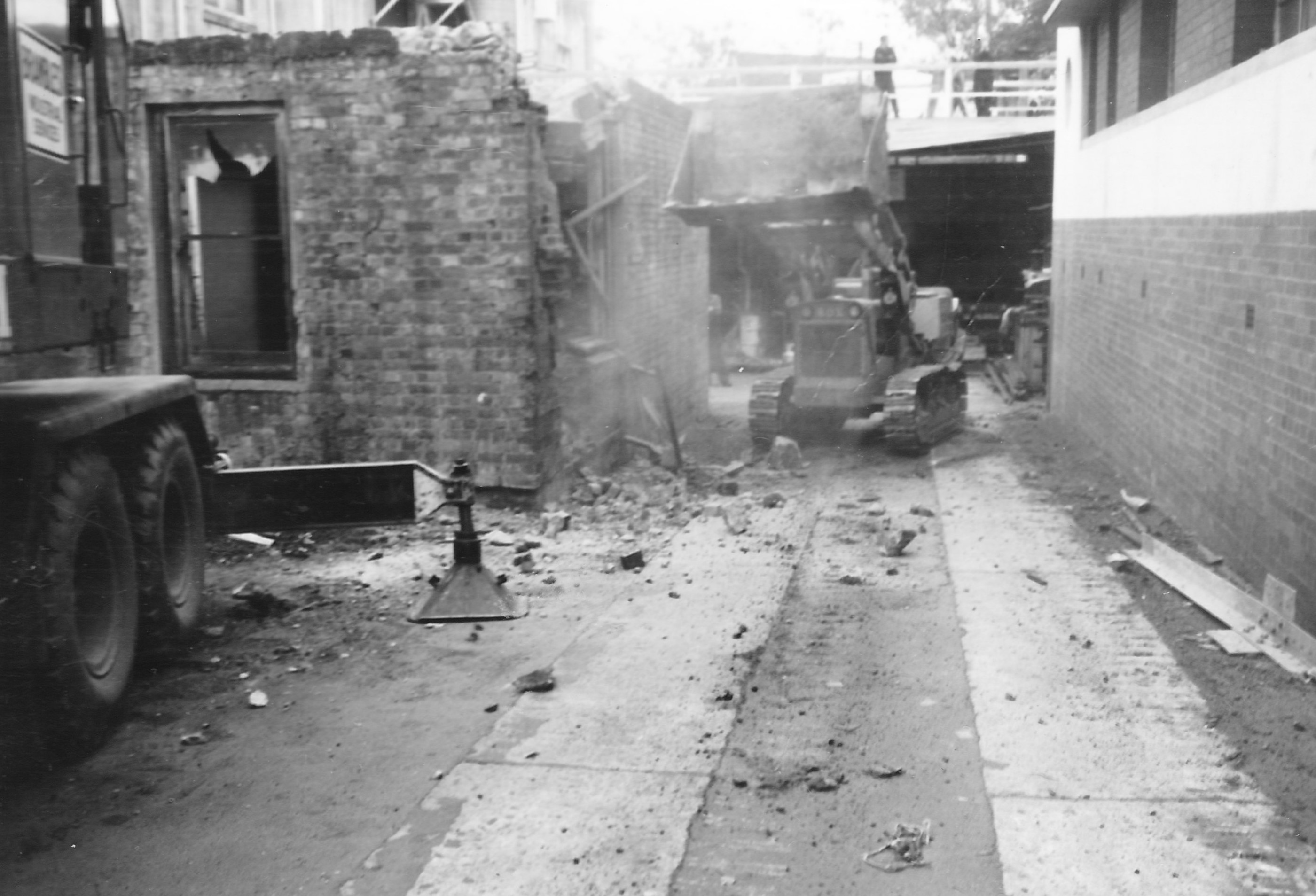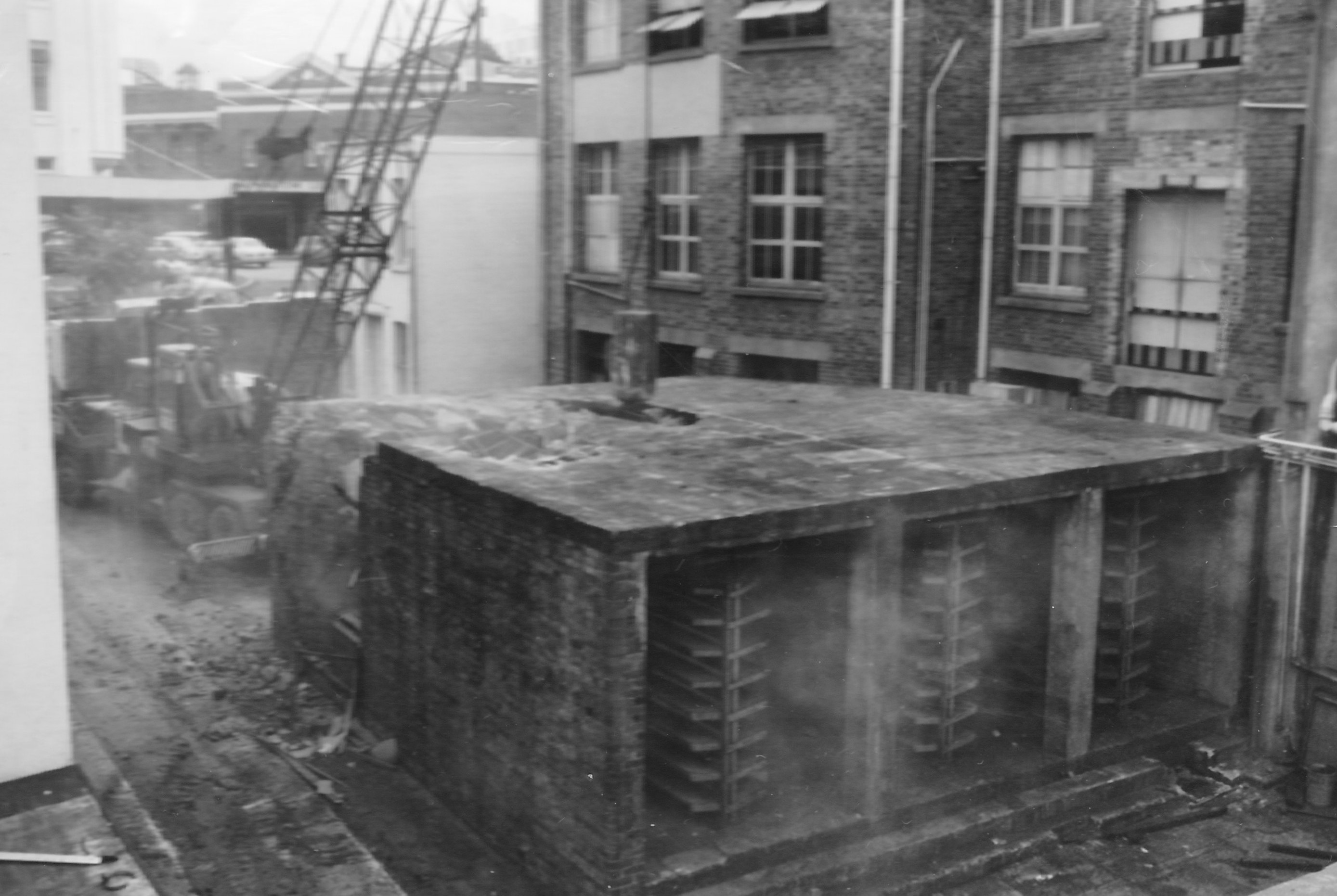 The demolition or the air raid shelter took place in June 1969 in the 17 photos “Valley W’Shops Metal Products_19” to “Valley W’Shops Metal Products_35”