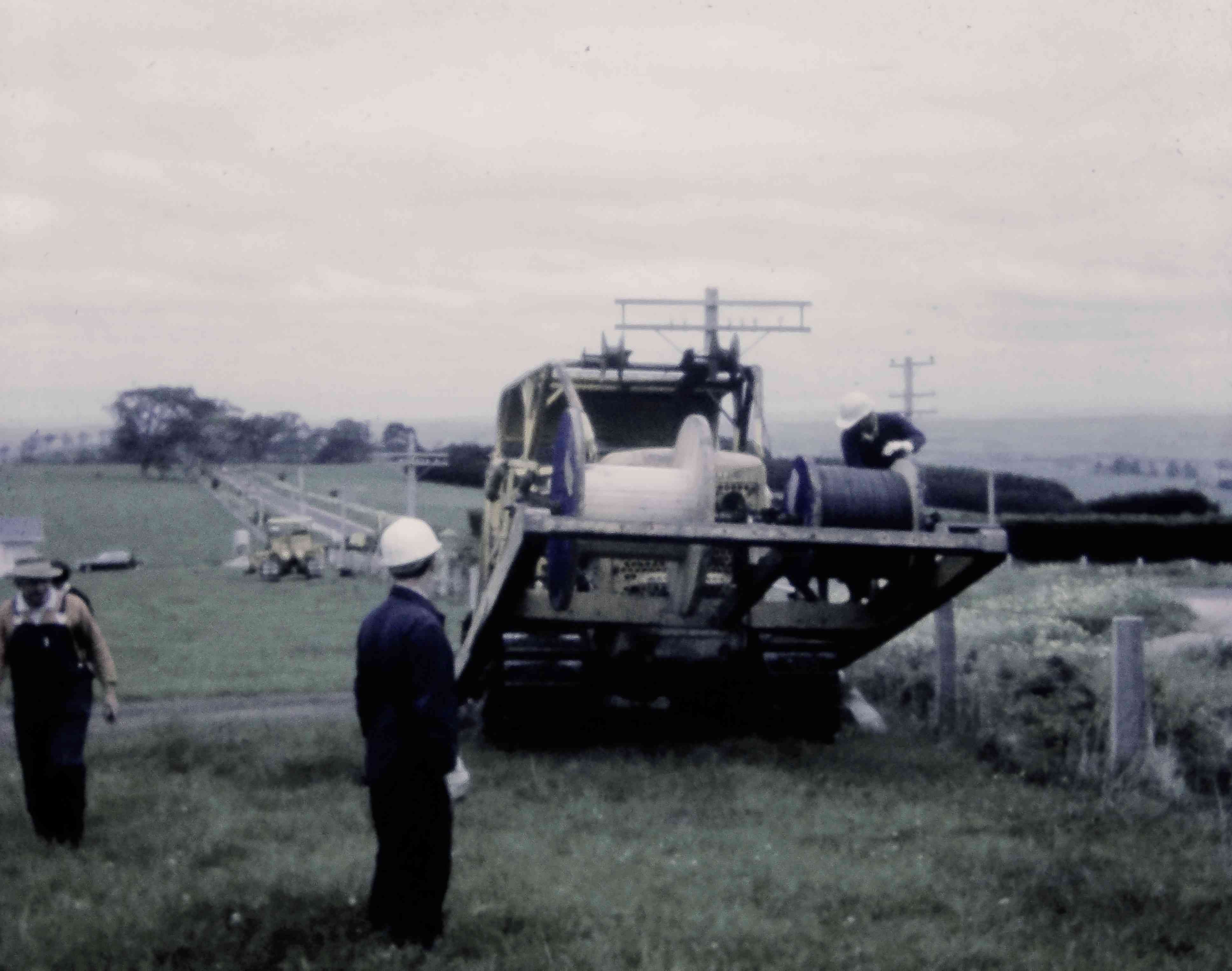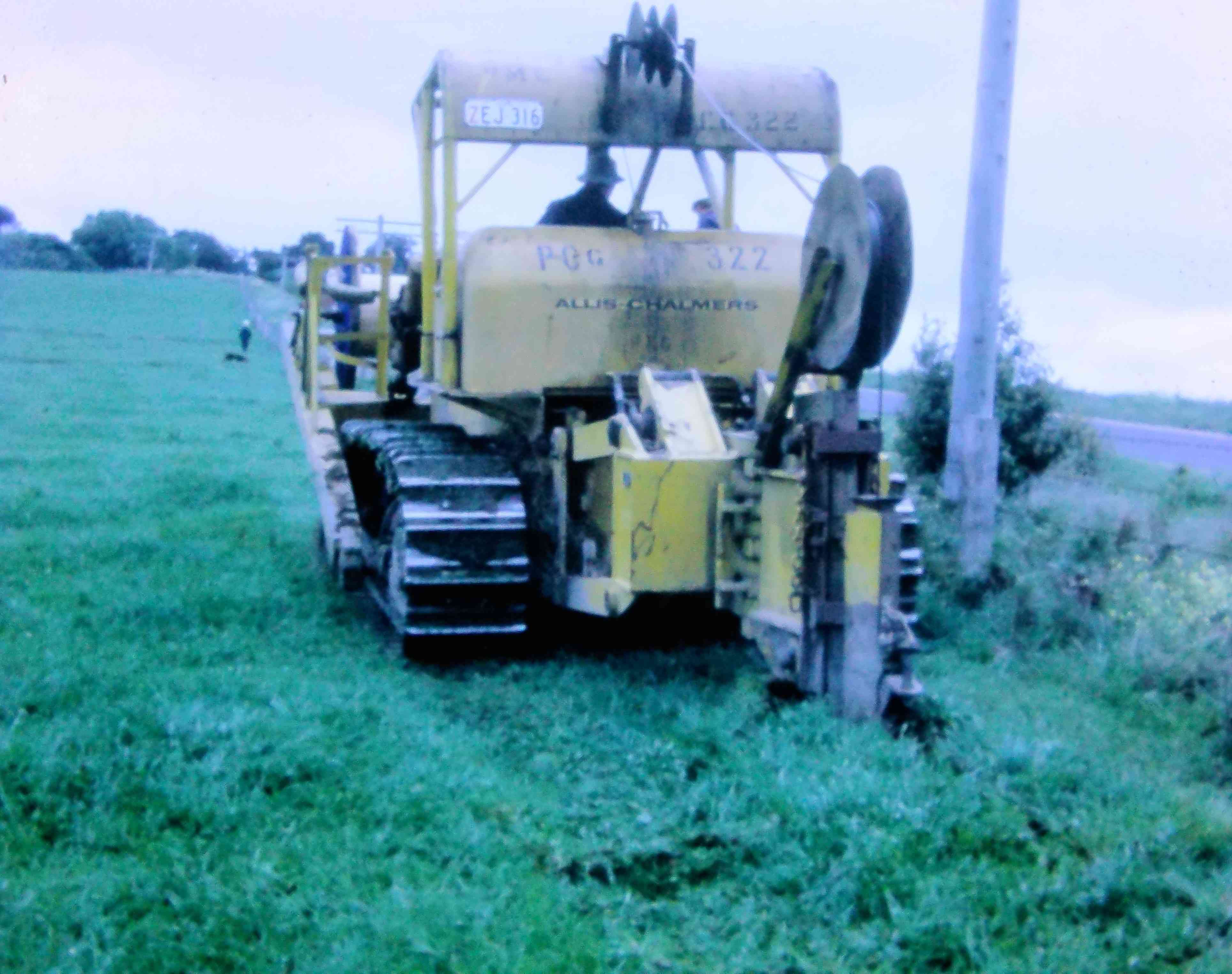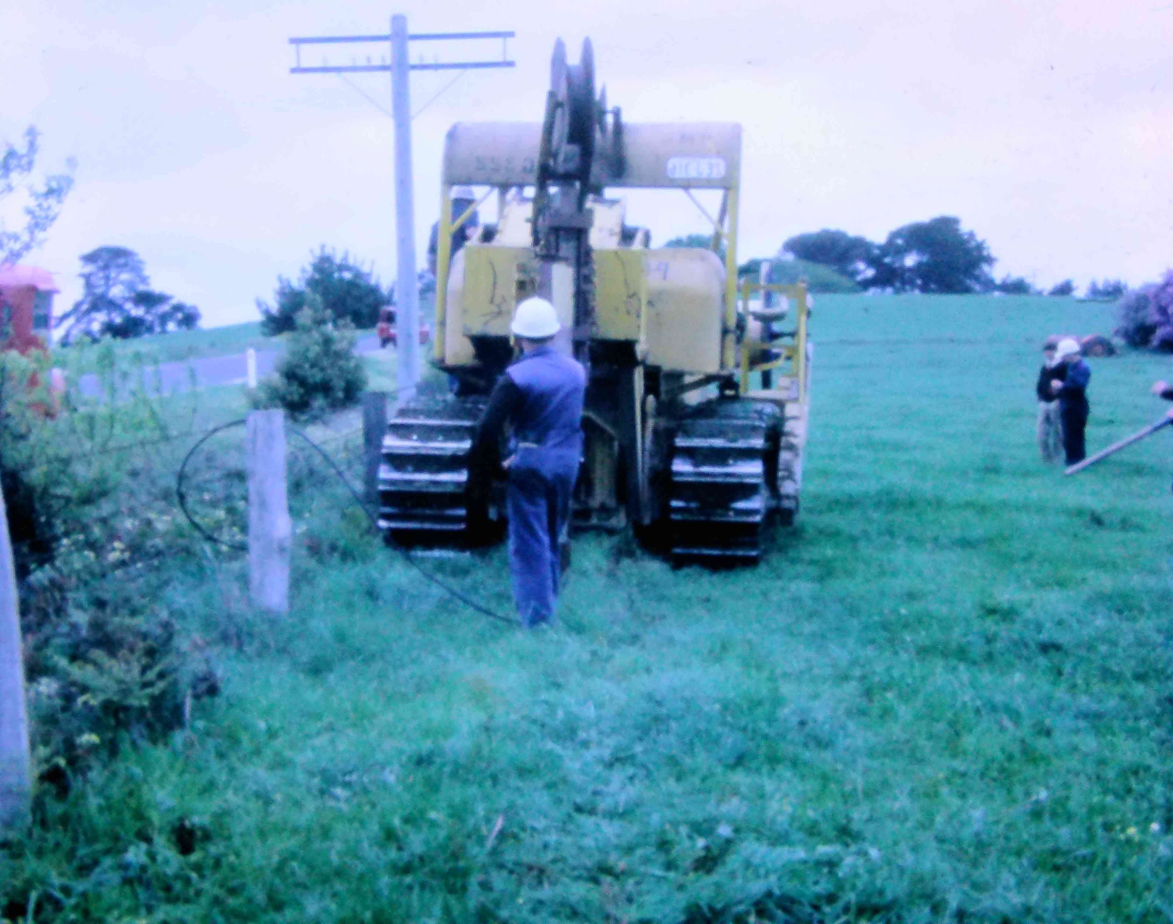 9427.15 D9 Laying direct buried cable farmer looking on